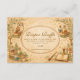 This enchanting baby shower design features a magical vintage storybook scene filled with charming wizard-inspired details. Delicate illustrations of potion bottles, spell books, antique keys, candles, and a wise little owl surround an ornate decorative frame, creating a whimsical atmosphere perfect for a magical celebration. The warm parchment background and soft watercolor textures give the design a nostalgic fairy-tale aesthetic inspired by classic fantasy illustrations. Ideal for wizard-themed baby showers, magical woodland celebrations, or whimsical fantasy gatherings welcoming a little wizard on the way.