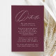 Détails de mariage simples et élégants Cartes d'enceinte "Détails" dans un script de calligraphie moderne blanc avec un arrière - plan solide couleur vin (ou couleur de votre choix). Personnalisez les cartes de boîtier minimaliste en ajoutant vos détails mariages en lettres blanches. Conçu pour coordonner avec notre collection de mariages Modern Elegance.