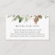 Une carte d'insertion de demande de livre pour le baby shower. Avec une végétation à feuillage persistant et des pinecones d'hiver avec poème : "UNE PETITE DEMANDE, NOUS ESPÉRONS NE PAS TROP DIFFICILE D'APPORTER UN LIVRE PLUTÔT QU'UNE CARTE ILS CHERCHERISERONT LE LIVRE, BIEN AIMÉ OU NOUVEAU S'IL VOUS PLAÎT SIGNER L'INTÉE AVEC UN MESSAGE DE VOUS!"
