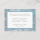 Cette élégante carte d'enceinte de réception de mariage bleu glacé gris argenté FAUX parties scintillant damas modèle de mariage a un arrière - plan de flocons de neige blancs assortis qui correspond à l'invitation de mariage d'hiver montré ci-dessous. Vous pouvez également customiser qu'il s'agit d'une carte d'informations ou de directions en modifiant le texte en conséquence. Veuillez contacter niteowlstudio@gmail.com si vous avez besoin de modifications.