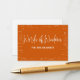Elegant orange and white words of wisdom advice for the graduate card with a beautiful script calligraphy font and a background of mathematical formulas and equations. Guests can write and add their messages at the back of the card and make the graduation party memorable forever. Illustrated and designed by Patricia Alvarez.