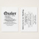 Définition amusante des Quakers sur le devant. Au verso, placez vos informations de réunion ! Remettez-les aux nouveaux arrivants et aux visiteurs, insérez-les dans les mailings, portez-les avec vous !