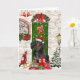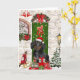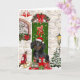 Dachshund Chien assis à l'extérieur de la maison décorée avec une couronne de Noël, l'arbre de Noël est une idée de cadeau de Noël parfait pour les amateurs de chiens.