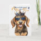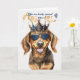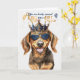Un très mignon chien noir et bronzé Dachshund aide à envoyer des souhaits d'anniversaire amusants, portant une belle couronne et lunettes de soleil digne d'un roi.