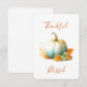 Célébrez la beauté de la saison d'automne avec cette carte de charme avec un design citrouille douillet et le message chaleureux "Merci et bienheureux." Parfait pour Thanksgiving, les salutations d'automne, ou simplement partager une note de gratitude avec des proches. Avec ses couleurs chaudes et son élégance rustique, cette carte ajoute une touche personnelle à tout message chaleureux pendant la saison des récoltes. Commandez la vôtre et célébrez la meilleure fête à venir!"