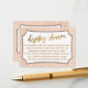 Si vous êtes l'hôte d'une douche d'affichage sans cadeau pour une future mariée, cette carte moderne et festive pourrait être le choix pour vous. Sur des badges blancs élégants et en utilisant une police de script manuscrite décontractée, j'ai ajouté un en-tête de typographie graphique qui dit "douche d'affichage" sur le devant, avec "à" et "de" pour le côté de la balise cadeau. Chacune de ces entêtes a été ornée d'une fausse texture de feuille d'or pour une ambiance festive. Derrière les badges, l'arrière - plan de la carte est recouvert d'un motif de confetti en feuille d'or simulé. Un champ modèle a été mis en place pour donner des instructions aux clients qui n'enveloppent pas leur cadeau, dans une couleur dorée correspondante. N'hésitez pas à modifier le libellé de quelque façon que vous le souhaitez. Il existe de nombreuses alternatives populaires à ce texte, si vous souhaitez un changement. L'arrière - plan a été paramétré sur un rose pâle modifiable ; vous pouvez également le modifier à n'importe quelle couleur que vous préférez. // 100 // Conçu par Melody Watson pour Paper Muserie.