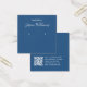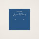 Une carte d'affichage classique bleue : texte blanc sur arrière - plan bleu classique, avec les places d'oreille indiquées par deux très petits cercles. Le nom est écrit dans un script moderne. Il a une morue QR à l'arrière, dans la partie inférieure, à gauche de l'info.