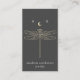 La carte d'affichage moderne de boucle d'oreille comprend la libellule céleste d'or avec une illustration de lune en croissant sur un arrière - plan gris foncé avec du texte contemporain blanc à l'avant, et du texte gris avec un code QR personnalisable pour votre site Web ou les médias sociaux à l'arrière.