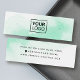 Carte d'affichage mini produit avec logo personnalisé centré modèle et icônes de médias sociaux. Les repères d'oreille peuvent être ajustés en ajoutant et en enlevant des espaces dans le champ modèle, et en déplaçant l'élément entier dans l'outil de conception.