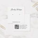 Une carte d'oreille minimaliste, noire et blanche : juste du texte noir sur un arrière - plan blanc, avec les lieux d'erring indiqués par deux très petits cercles. Le nom est écrit dans une calligraphie élégante. Il a une morue QR à l'arrière, dans la partie inférieure, à gauche de l'info.