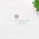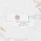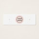 Carte d'affichage de mini produit avec icônes de médias sociaux et logo personnalisé centré sur un cercle rose pâle. Les repères d'oreille peuvent être ajustés en ajoutant et en enlevant des espaces dans le champ modèle, et en déplaçant l'élément entier dans l'outil de conception.