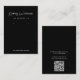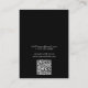 Carte d'affichage à oreille noire élégante avec votre nom ou marque présentée dans un script de signature blanc chic. À l'arrière, entrez une adresse URL pour créer un code QR scannable connecté à votre site Web, portefeuille, profil de médias sociaux, etc., ce qui permet aux clients d'explorer facilement votre marque et de se connecter avec vous.