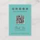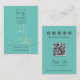 Carte d'affichage turquoise pour bijoux en feuille verte QR : Élevez le charme de votre marque avec ces bijoux turquoises vert élégant turquoise et vert, avec un motif en feuille monochrome. Idéal pour les boutiques chic qui servent une clientèle féminine. Montrez votre logo au sommet de la carte. Customisez les placements de bijoux à votre goût. Au contraire, dévoilez votre présence en ligne (détails des médias sociaux et du site web) via un code QR, améliorant ainsi l'interaction avec le client. Terminez par un remerciement sincère ou un slogan unique pour une touche personnalisée. Adaptez les icônes des médias sociaux à vos préférences ou gardez-les toutes ! Découvrez notre collection harmonisée pour une stratégie de marque complète.