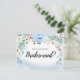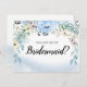 Belle façon de demander à un ami d'être votre demoiselle d'honneur. Des fleurs d'aquarelle bleue encadrent votre carte de femme de chambre en haut et un lavabo bleu très branché et branché encadre le fond.