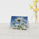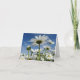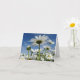 Photographie d'un champ de marguerites blanches atteignant le ciel bleu. Texte personnalisable, "Reach for the Sky !" dans la carte.