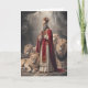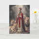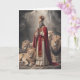 Daniel dans la carte de salut du lion.Un Daniel barbu en tenue royale, debout avec les mains serrées dans la prière. Il porte une couronne et une robe avec une ceinture rouge. Il est entouré de quatre lions majestueux, dont un lion couché et les trois autres debout. Le cadre semble être une grotte rocheuse ou une caverne avec une lumière douce et diffuse qui illumine la scène.