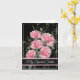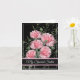 La carte d'anniversaire est présentée avec un arrière - plan noir et de jolies oeillets roses. La carte contient un message spécial. Customisez cette carte ou achetez tel quel. Image stock