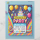 Le design "All-in-One Birthday Party Invitation" présente une disposition vibrante et festive avec des ballons colorés, des confettis et une illustration de gâteau d'anniversaire. Le haut présente un texte ludique invitant les invités à la fête, tandis que la partie inférieure offre un espace pour des détails essentiels comme la date, l'heure, le lieu et les informations RSVP. Avec un arrière - plan lumineux et joyeux dans les tons de dégradé, cette carte est parfaite pour créer de l'excitation et donner un ton joyeux pour la fête à venir. Idéal pour les fêtes d'enfants ou tout événement d'anniversaire amusant !