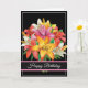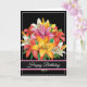 Carte d'anniversaire avec un arrière - plan noir et un joli bouquet de nénuphars.