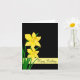 La carte d'anniversaire est affichée en noir avec une belle impression de jonquille jaune. Customisez cette carte et ajoutez votre propre message spécial. Ou acheter comme est vide à l'intérieur. Image stock