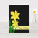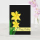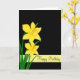 La carte d'anniversaire est affichée en noir avec une belle impression de jonquille jaune. Customisez cette carte et ajoutez votre propre message spécial. Ou acheter comme est vide à l'intérieur. Image stock