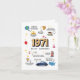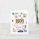 Prenez un voyage dans le temps jusqu'en 1971. La carte d'anniversaire parfaite pour maman, papa, mari ou femme Rendre leur anniversaire inoubliable avec une carte unique qui fait remonter l'horloge à 1971! Ce n'est pas seulement une carte de voeux, c'est une capsule temporelle remplie de souvenirs, de faits amusants et d'un hommage sincère à une année vraiment spéciale. Conçue avec un charme vintage, cette carte est remplie de petites bouts de 1971 : 🎶 Revenu moyen et population 🛒 Prix du gaz, de l’épicerie et des articles de tous les jours 💡 Inventions et événements mondiaux remarquables 👶 Les noms de bébés les plus populaires de l’année C’est un souvenir amusant et informatif qui saura susciter des sourires, des histoires et peut-être même quelques surprises. Que ce soit pour maman, papa, mari, femme, ou toute personne qui célèbre un anniversaire marquant, cette carte est une façon réfléchie de célébrer leur voyage et d'honorer le monde dans lequel ils sont nés. Plus qu’une simple carte d’anniversaire, il s’agit d’un cadeau significatif, d’un voyage dans la mémoire et d’un rappel de la distance qu’ils ont parcourue et de leur amour. À l'intérieur de la carte d'anniversaire : et beaucoup, beaucoup d'autres!