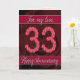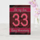 Carte d'anniversaire 33 ans avec roses et feuilles