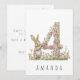 Rendez le 4ème anniversaire d'un tout-petit encore plus spécial avec cette charmante carte, mettant en vedette une délicate illustration à l'aquarelle du chiffre 4, magnifiquement réalisée à partir de minuscules fleurs pastel colorées. Un adorable lapin se tient debout à côté du chiffre, grignotant avec amusement les fleurs, ajoutant une touche de douceur et de joie au design. Que vous soyez un parent, un grand-parent ou un ami de la famille, cette carte enchanteresse est sûre de faire sourire le petit et ses proches.