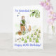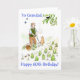 Une carte d'anniversaire de 60e anniversaire pour un grand-père avec un homme qui aime écouter le chant des oiseaux tout en s'occupant du potager. Le chat regarde et les papillons sont sortis sous le soleil, d'une aquarelle de Judy Adamson. (Autres âges et membres de la famille disponibles sur demande.)