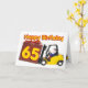Un chariot élévateur tient un colis avec l'âge là-dessus dans les lettres jaunes lumineuses. Une carte d'anniversaire gaie et drôle pour un homme.
