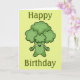 Brocoli de dessin animé vert amusant avec un grand sourire heureux. Modèles de texte en haut et en bas de la lecture Joyeux Anniversaire. Gardez-le tel quel ou changez-le dans votre propre texte.