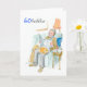 Une carte d'anniversaire spécifique à l'âge à personnaliser, avec la salutation dans Gallois et un homme plus âgé détendant avec le journal à la société d'un chat et d'un chien ; d'une illustration peinte à la main par Judy Adamson.