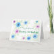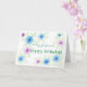 Une carte d'anniversaire pour une petite amie au design rose et bleu Love-in-a-mist, peinte à la main sur un arrière - plan blanc par Judy Adamson. Videz à l'intérieur pour votre propre message. Voir aussi assortir tasse et chaussures Keds.