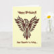 Une carte d'anniversaire spéciale pour quelqu'un que vous connaissez qui aime le chocolat ! Un Phoenix émergent fait de cette substance céleste - quelle meilleure combinaison pourrait-il y avoir ? Positif et chocolatée en même temps ! L'arrière - plan est une couleur de chocolat blanc vanillé, en complément de la couleur chocolat au lait du phénix. Le texte est entièrement personnalisable à l'avant et à l'intérieur Alors traitez quelqu'un dont l'anniversaire est avec ce grand design. Allez, vous savez que c'est mérité !