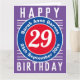 Couleurs vives et design audacieux. Carte anniversaire numérotée. 29 ans.
