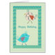 Deux mignons petits oiseaux ornent l'avant de la carte, chacun faisant face à une direction opposée. Un chevron entoure les oiseaux et l'arrière - plan du design est vert clair. Merci à Hungryjpg pour certains des éléments du design. Même si la carte est pour une fille, elle peut facilement être changée en garçon avec quelques mots.