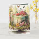 Bonne carte d'anniversaire avec beau gâteau dans la forêt avec des oiseaux, des fleurs et des arbres.