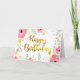La carte lit : "Joyeux anniversaire" en or métallique. Conception florale de frontière de caractéristiques. Grand pour un destinataire de tout âge.