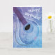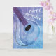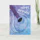 Carte d'anniversaire Blue Bouzouki avec Joyeux Anniversaire sur le devant et texte modifiable à l'intérieur. Illustration de Bouzouki bleu aux lignes radiales motif, décorations de symboles musicaux, instrument de musique Bouzouki à la texture en détresse plié carte d'anniversaire. Personnalisez la carte - texte modifiable à l'intérieur de la carte - deux zones de message modifiables. Illustration d'un bouzouki : instrument de musique à cordes acoustiques L'art Bouzouki montre le corps, le cou et les cordes du bouzouki, aux couleurs vives, à l'art abstrait arrière - plan et aux décorations de symboles musicaux.