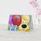 Adorable Big Nose Cairn Terrier avec un cadeau d'anniversaire et tenant des ballons dans sa bouche. Le ballon dit Rappy Rirthday !