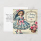 Célébrez l’anniversaire d’un être cher avec cette carte d’aquarelle d’inspiration vintage et magnifiquement conçue. Dotée d'une charmante jeune fille en robe bleu pois classique, d'un parasol rose doux et d'une corbeille de délicates roses rouges et roses, cette carte apporte une élégance nostalgique à toute journée spéciale. Avec un message "A Birthday Greeting" dans une police rétro, il est parfait pour ceux qui aiment le style intemporel et l'art sentimental. Imprimée sur papier de qualité supérieure, cette carte est idéale pour les amis, la famille ou toute personne qui aime les designs classiques et nostalgiques. Faites de votre anniversaire un moment inoubliable grâce à cette carte de voeux unique.
