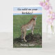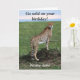 Une carte d'anniversaire pour les amoureux de la nature. Cette carte a une photo fantastique d'un guépard magnifique et peut être personnalisée avec le nom de la fille d'anniversaire ou garçon, femme ou homme. Le texte peut être modifié pour indiquer quel anniversaire il est - 20e, 30e, 40e, etc.