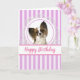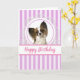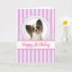 Ajoutez votre propre salutation à cette carte de chien mignonne. Cette carte d'anniversaire a été créée à partir d'une photo d'un Papillon. Un design superposé avec de la fausse dentelle, des rayures et des voeux d'anniversaire.