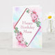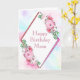 Carte d'anniversaire de cadre géométrique diamant rose aquarelle pour maman.