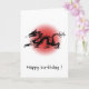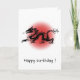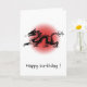 C'est une carte d'anniversaire avec l'illustration d'un dragon chinois traditionnel en noir sur un arrière - plan rouge.