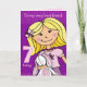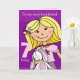 Cette carte dit "À mon meilleur ami 7 aujourd'hui. À l'intérieur : "Joyeux anniversaire". Ou customisez avec vos propres mots. Fun card girl avec cadeau et blanc de lapin chanceux art et design par Sarah Trett.
