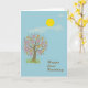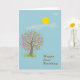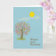 Carte d'anniversaire de juin avec un arbre à fleurs créatif, le soleil et un arrière - plan bleu. L'herbe sous l'arbre est une brosse photoshop de bsilvia. Vous êtes invités à ajouter votre propre message à l'intérieur de la carte, et si vous devez l'acheter, merci beaucoup.