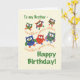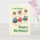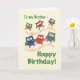 Une carte d'anniversaire amusante pour un Frère, avec des chouettes mignonnes et colorées sur un arrière - plan parchemin, d'un collage de papier peint à la main par Judy Adamson. Une version frontale personnalisée de cette carte d'anniversaire est également disponible en coque que vous souhaitez utiliser pour une relation différente ou une personne spécifique et vous pouvez changer le message intérieur si vous le souhaitez.