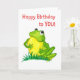 Une carte d'anniversaire légère avec une mignonne grenouille verte qui chante, 'Joyeux anniversaire à vous ! ' Videz à l'intérieur pour votre propre message.