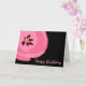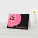 Une carte d'anniversaire avec l'image d'une tulipe rose chaud à gauche sur un arrière - plan noir. Le texte rose à droite dit "Joyeux anniversaire." À l'intérieur.